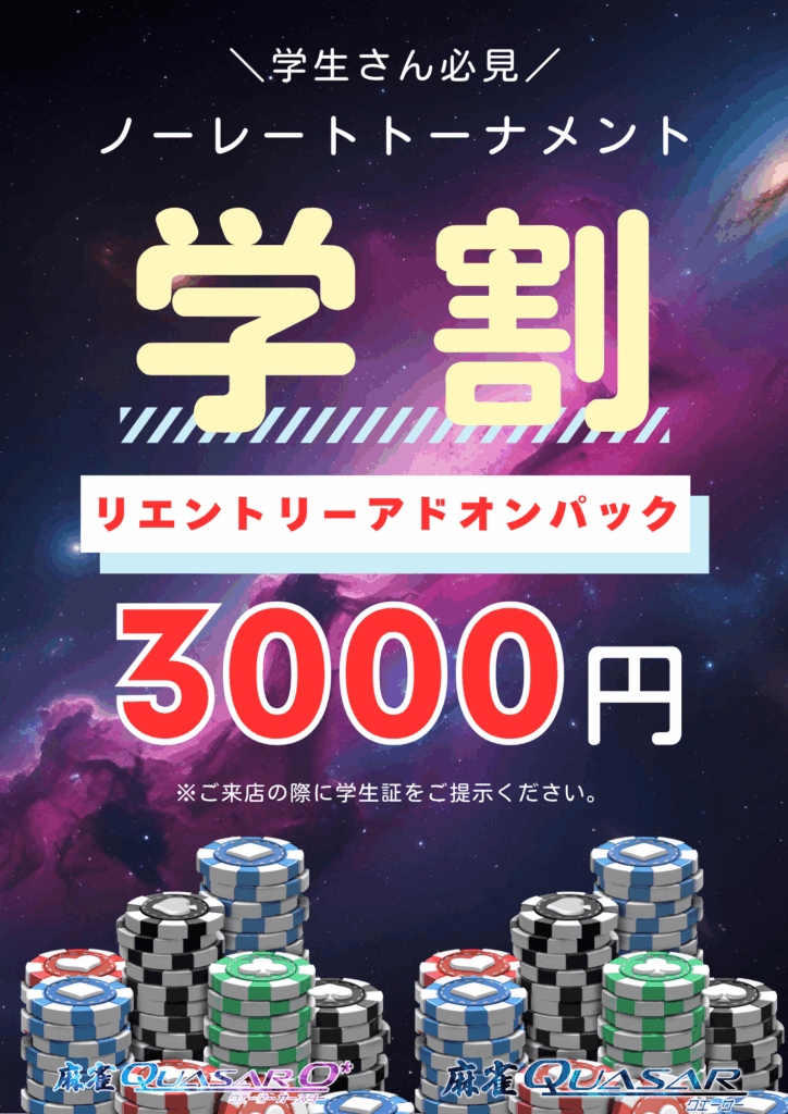 麻雀Quasar、麻雀Quasar O*では毎月さまざまなルールで麻雀トーナメントを開催しています。